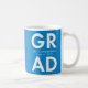 Modern graduation coffee mug featuring "Grad" in bold white lettering with a blue background or colour of your choice. Personalise the graduation mug by adding the graduate's name and graduation year. The coffee mug makes for a great personalised graduation gift for both high school and college graduates!