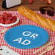 Custom graduation plates featuring "Grad" in bold white lettering with a blue background or color of your choice. Personalize the graduation paper plates by adding the graduate's name and graduation year. The personalized graduation plates are perfect for both high school and college graduation parties.