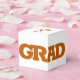GRAD in bold burnt orange lettering wraps around the front of these white 2" square graduation party favour boxes with your name and thank you message on the top.