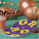 GRAD in bold yellow lettering curves around the edges of these purple background graduation party paper plates - available in 2 sizes. Congratulations above the name of your graduate and the Class of below. The perfect addition to your table decor for upcoming grad parties. CHANGE THE COLORS to anything! **TIP: Click on CUSTOMIZE button; click on COLOR box on top right; enter your colour hex code in the #xxxxxx box to match your school colours. SEE ENTIRE COLLECTION of pre-done colour combinations and more ---> http://bit.ly/2EmBPHc <---