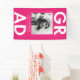 Custom graduation banner featuring "Grad" in bold white lettering with a hot pink background or colour of your choice. Personalise the photo graduation banner by adding the graduate's name, school name, and graduation year. The trendy graduation banner is perfect to display at your graduate's high school or college graduation party!