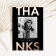 Trendy, modern graduation thank you card featuring the graduate's photo with "Thanks" in bold rose gold foil lettering and a black background. Personalise the front of the photo graduation thank you card by adding the graduate's name, school name, and graduation year. The back of the thank you card features space for your typed or handwritten message with a black and white geometric pattern.
