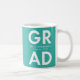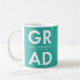 Modern graduation coffee mug featuring "Grad" in bold white lettering with a teal/turquoise background or colour of your choice. Personalise the graduation mug by adding the graduate's name and graduation year. The coffee mug makes for a great personalised graduation gift for both high school and college graduates!