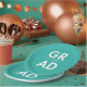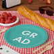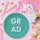 Custom graduation plates featuring "Grad" in bold white lettering with a turquoise background or color of your choice. Personalize the graduation paper plates by adding the graduate's name and graduation year. The personalized graduation plates are perfect for both high school and college graduation parties.
