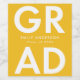 Personalized graduation wine labels featuring "Grad" in bold white lettering with a yellow background. Personalize the modern graduation wine labels by adding the graduate's name and graduation year. The modern graduation wine labels are perfect for graduation parties!