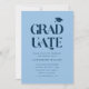 Modern and simple graduation party invitation template card featuring typography text that says "graduate" in bold with an illustration of a graduation cap. You can add the graduate's photo on the back of the card. Great for both high school and college graduate. The background is blue.