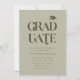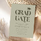 Modern and simple graduation party invitation template card featuring typography text that says "graduate" in bold with an illustration of a graduation cap. You can add the graduate's photo on the back of the card. Great for both high school and college graduate. The background is sage green.