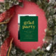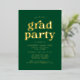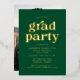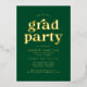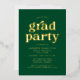 Stylish graduation party invites featuring "grad party" displayed in bold gold foil lettering with the graduate's name and party details shown below on a green background. The back of the green and gold graduation party invite features the graduate's vertical photo. The simple graduation party invites are perfect for both high school and college graduates.