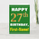 Bold, Green, Faux Gold 27th Birthday w/ Name Card