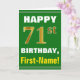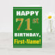 Bold, Green, Faux Gold 71st Birthday w/ Name Card