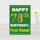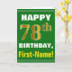 Bold, Green, Faux Gold 78th Birthday w/ Name Card