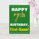 Bold, Green, Faux Gold 7th Birthday w/ Name Card