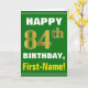 Bold, Green, Faux Gold 84th Birthday w/ Name Card