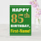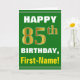 Bold, Green, Faux Gold 85th Birthday w/ Name Card