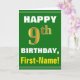 Bold, Green, Faux Gold 9th Birthday w/ Name Card