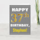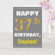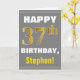This simple birthday-themed greeting card design features a warm birthday wish like "HAPPY 37th BIRTHDAY, Stephen!" on the front, in bold text on a grey (grey) coloured background. The birthday number has a faux/imitation gold-like colouring appearance. The name on the front can be customised. The inside features a birthday message that can be personalised. A greeting card like this could be a fun way to deliver birthday wishes to somebody who is celebrating their thirty seventh birthday. [~Z0000283]