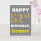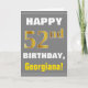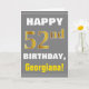 This simple birthday-themed greeting card design features a warm birthday wish like "HAPPY 52nd BIRTHDAY, Georgiana!" on the front, in bold text on a grey (grey) coloured background. The birthday number has a faux/imitation gold-like colouring appearance. The name on the front can be customised. The inside features a birthday message that can be personalised. A greeting card like this could be a fun way to deliver birthday wishes to somebody who is celebrating their fifty second birthday. [~Z0000283]
