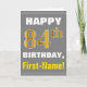 Bold, Grey, Faux Gold 84th Birthday w/ Name Card
