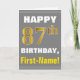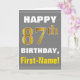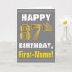 Bold, Grey, Faux Gold 87th Birthday w/ Name Card