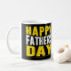 Wish Dad a Happy Father's Day in a big, bold way! This coffee mug features a striking typographic design with "Happy Father's Day" in vibrant yellow and white against a textured deep red background. The classic and energetic style makes it a standout gift that Dad will love using every morning. High-quality ceramic build, perfect for home or office. Double-sided print for maximum visibility.