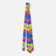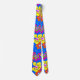 Bright blue floral neck tie with a big, bold print of colourful hibiscus flowers. Illustrated design in colours of yellow, orange and pink make the perfect accessory for tropical wedding - groom or guest.