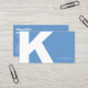 A single, bold initial on soothing blue creates an eye-catching graphic on this professional business card template. © 1201AM CREATIVE