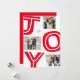 Spread JOY with this bold modern holiday photo card. This unique festive design features three photos around fun red letters spelling JOY. This cool Christmas card is great for family photos, couples, babies, pets and more. The back is a matching red with a speckle and also includes room for a custom message, family newsletter update or it can be left blank. Find similar designs and more colours in the Lea Delaveris Design Bold Joy collection. This design is also available as a digital Christmas card download.