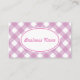 A bold lavender gingham pattern decorates this professional business card. Customise this modern business card to suit your needs. Change the text, font size, etc... Add or delete text. The design is from original art. Use this professional business card for a boutique, bakery, gourmet foods, event planner, bakery, florist, cosmetologist, appointments, hair stylist, salon, home decor, interior design, daycare, child care, preschool, etc...