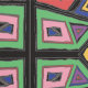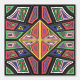 A bold, hand-drawn geometric pattern inspired by ancient symbols and tribal markings. The design features diamond-centred motifs radiating outward in a structured grid, with irregular linework.