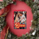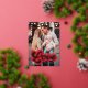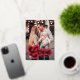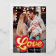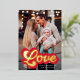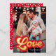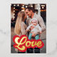 Cute Valentine's day photo card featuring "Love" displayed in a red and gold foil retro script. Personalise the front of the foil Valentine's day card with your vertical photo, custom greeting, and name. The back of the photo Valentine's day card features a red and white heart pattern.