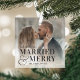 Bold Married & Merry Wedding Photo Newlywed Glass Tree Decoration