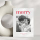 Bold Minimalist Red Merry Christmas Wedding Photo Holiday Card