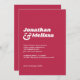 This Retro Viva magenta wedding invitation features minimalist modern bold text. The design is simple yet eye-catching, making it perfect for any modern wedding. The colour instantly stands out and adds an extra special pop to your wedding.