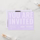 Surprise your friends & family with these ultra modern invitations, featuring bold typography, lilac background & custom text. Easily add your own details by clicking on the "personalise" option.