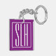 Bold Modern 3 Initials Monogram | White & Purple Key Ring