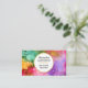 The front of this beautiful business card features bold, multicolored watercolor paint splatters, with the name and job title appearing inside a gold-edged white circle at the centre in popular typography, separated by a gold divider. The back of the card features the business name at the top, and three lines of contact information at the bottom, separated in the middle by a gold divider. You can personalise this item for yourself or a loved one by changing all of the text lines.
