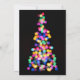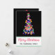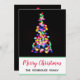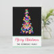 Celebrate the winter holiday season by sending out cards with a bold, colourful, abstract photo of blurred Christmas lights. The bokeh created from the pink, red, orange, blue, green, and yellow lights form the shape of a Christmas tree. The background of the vertical image is black. Across a white band at the bottom, it reads "Merry Christmas" in red. Customise the family name below that in the sidebar. The back of the flat card features the photograph full-size.