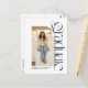 Modern and stylish, this navy blue two-photo graduation announcement and graduation party invitation postcard is perfect for the bold and trendy graduate. Featuring a unique arched photo on the front with bold modern type, this design also has room on the back for a second photo and graduation party invitation text. The text on the back can also be used for a thank you message, future plans and more. This combination graduation announcement and graduation party invitation is perfect for high school or college grads and works well for guys or girls. The front photo is vertical on a white background and the back is horizontal. Find coordinating pieces and more colours in the collection by Lea Delaveris Design.