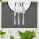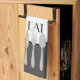 Bold modern grey and white cutlery design with editable text kitchen towel. Art copyrights Ann Powell all rights reserved