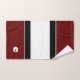 Bold modern maroon with black and light grey stripe monogram bath towel set.