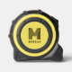 This fun, stylish tape measure features a yellow background that matches the yellow ring and back. Text templates are included for both a monogram initial and name, both in modern styled fonts. Makes a great stocking stuffer or gift for any other occasion! Text and background colour can both be customised, if desired.