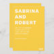 Presenting our Modern Bold & Bright Yellow Typography Wedding Invitation. This invitation radiates contemporary elegance with its vibrant yellow hue and bold typography. The modern design exudes energy and sophistication, setting the tone for a memorable celebration. Make a statement that reflects your style and personality with these striking wedding invitations.