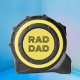 This fun tape measure features a yellow background that matches the yellow ring and yellow on the back. Funky, modern retro typography reads, "RAD DAD." Makes a great stocking stuffer, Father's Day gift, or gift for any other occasion! Text and background colour can both be customised, if desired.