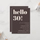 This birthday invitation in brown features bold modern typography with a clean, minimalist layout designed to celebrate a milestone birthday in a stylish way. The large “Hello 30!” headline creates an eye-catching focal point while the neutral color palette keeps the look timeless and elevated. Personalized with the guest of honor’s name, date, time, and location, it works beautifully for chic adult birthday parties and modern celebrations. Designed for hosts who love simple design with strong visual impact.