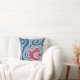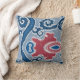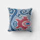 This pillow design is two sided. On the front is a bold, large scale piece of the ikat pattern that is in small scale repeat on the reverse side. Though a modern design, this artwork was inspired by vintage antique Uzbek Ikat weavings and was designed by hand in a fresh, modern contemporary colour way that is as perfect for a coastal beach house or an urban city loft or warehouse industrial chic decor. A large navy and cobalt blue scrolling pattern zig zags its way across the pattern with a red, central pattern for accent. The background is a slate blue grey with white outlines for a pop of freshness. Mix and match for your own unique colour palette and home decor style. Also works well with BOHO or Bohemian looks, traditional country with a modern touch and even in minimalistic contemporary industrial architecture. Art copyright Audrey Jeanne Roberts all rights reserved.
