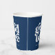 Bold, modern and stylish graduation paper cups feature simple modern type on a blue background with the graduate's name and graduating class.