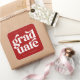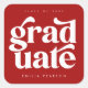 Bold, modern and stylish graduation sticker feature simple modern type on a red background with the graduate's name and graduating class.