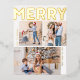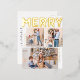 Bold Modern Vertical Three Photo Merry Gold Foil Holiday Postcard