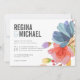 Watercolor florals in a vibrant colour palette of orange, blue, green, blush pink and yellow accent your personalised wedding details in this wedding invitation design.