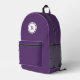 Bold Monogram in White Circle on Purple Printed Backpack